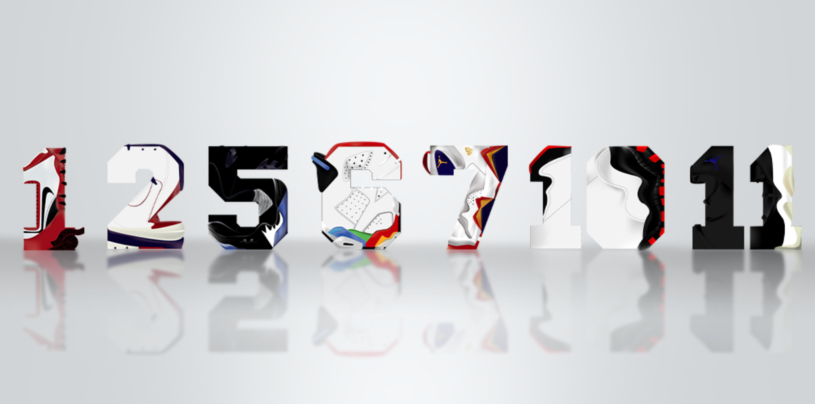 The Jordan brand shoes are named by number. Using Adobe Illustrator I turned the shoes into their associated number.